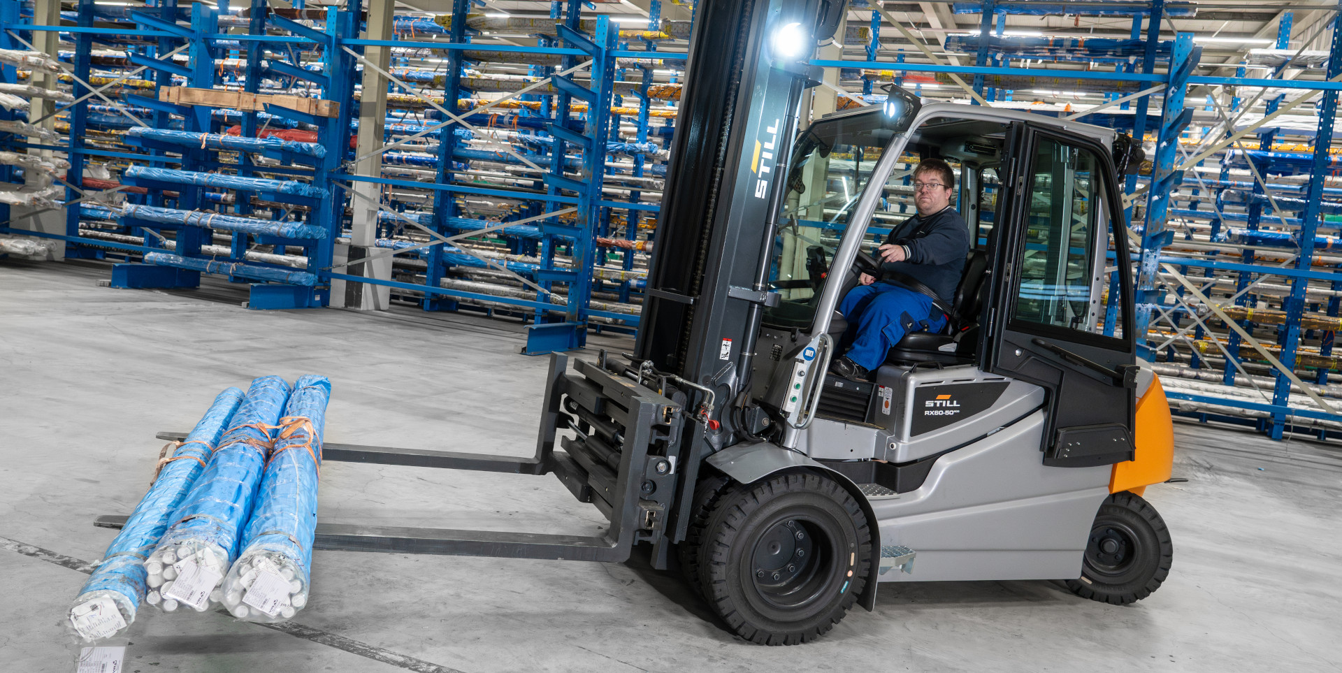 Die Lösung ist ein eindrückliches Beispiel für kundenfokussierte Entwicklung – und bislang ein Unikat auf dem deutschen Markt für Frontstapler. Zwei Jahre Entwicklungszeit stecken in dem Fahrzeug, das von STILL in Zusammenarbeit mit Barrus Engineering für das Unternehmen Voß Edelstahlhandel entwickelt und gefertigt wurde, um nachhaltige, wirtschaftliche Inklusion im Arbeitsalltag zu ermöglichen. Seit September 2024 ist der Stapler im Einsatz.