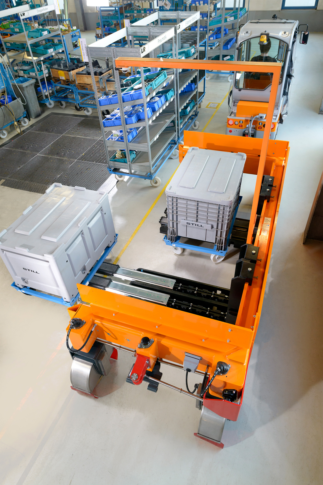 STILL Tugger train with automatic loading and unloading